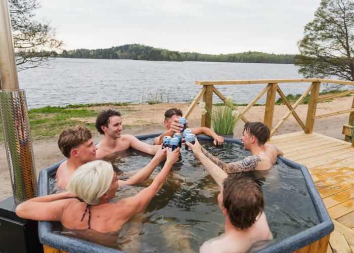 Njut av vår vedeldade bastu samt badtunna med storslagen utsikt över sjön.